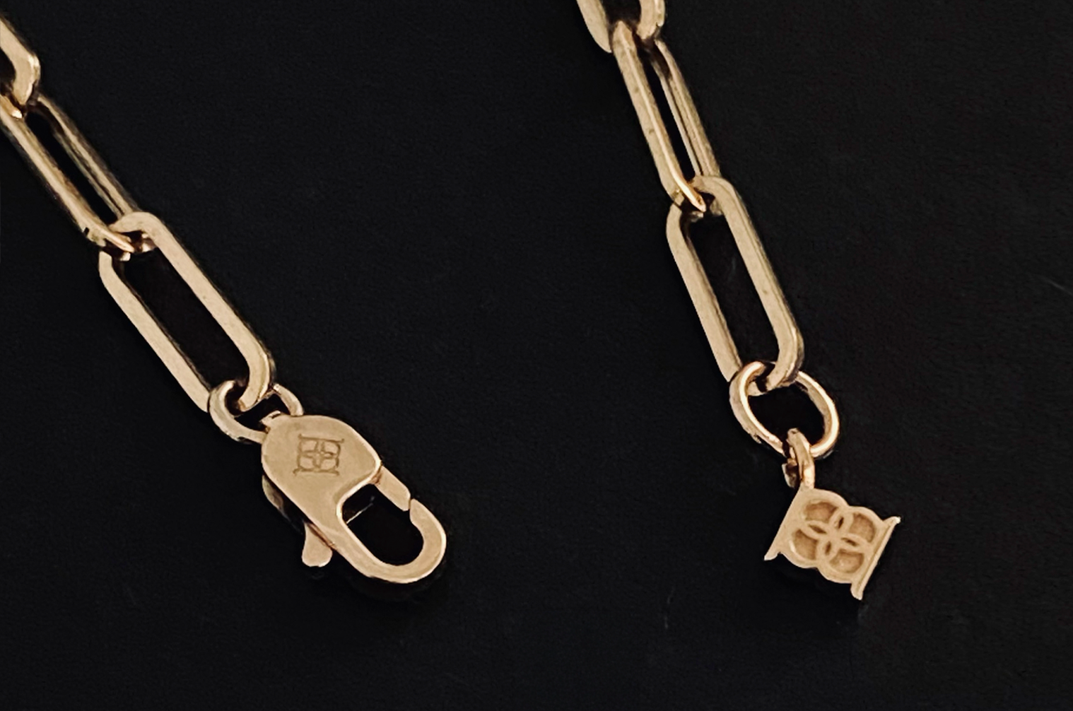ARA 選用經典的十字鏈(又稱卡地亞鏈)進行訂製,其密度與含金量皆高於一般市售鏈條,重量更扎實、不易斷裂,佩戴起來也更能感受到珠寶應有的份量感與質感。
