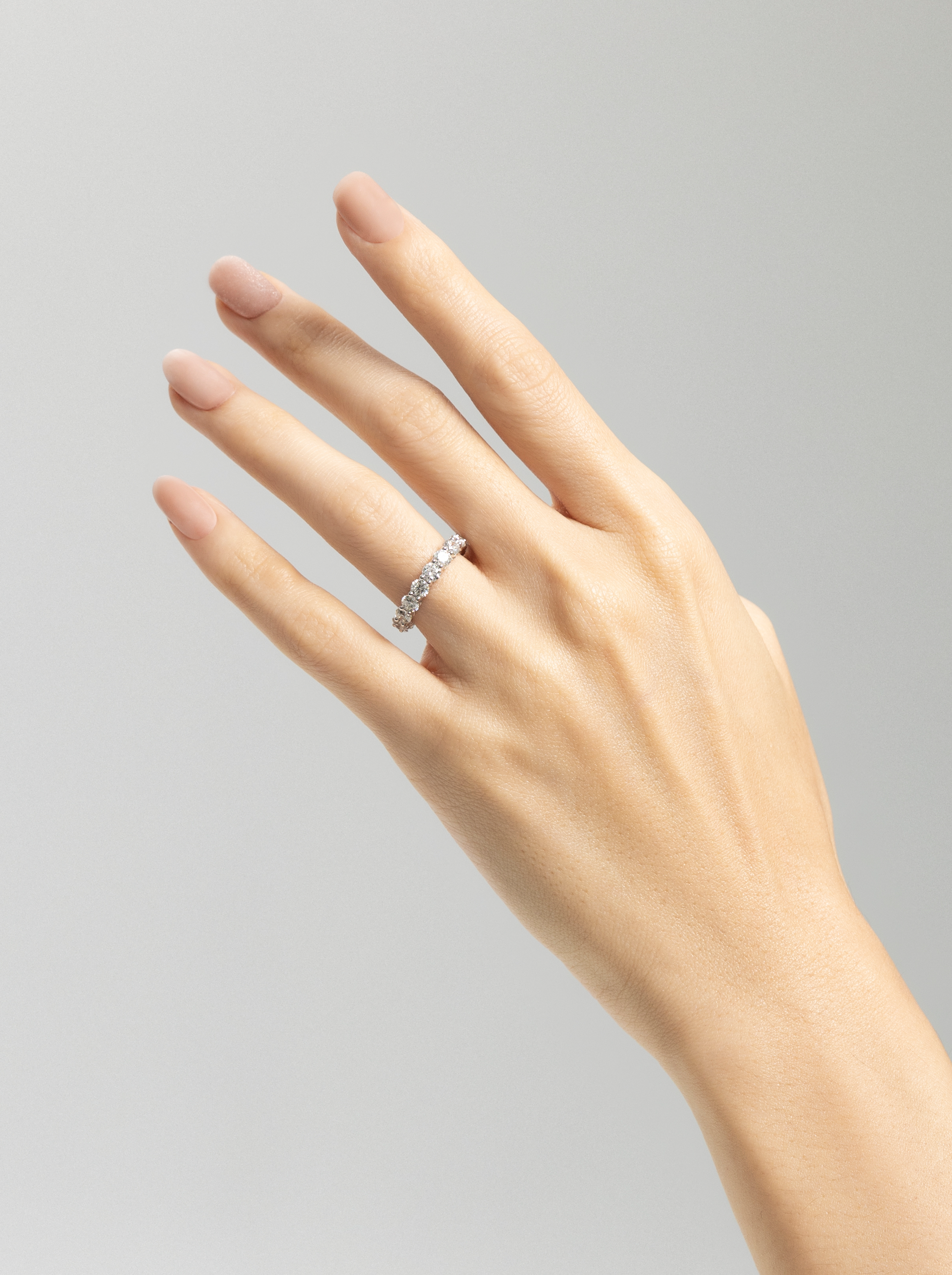 提供 18K 黃金、18K 玫瑰金與 PT950 鉑金 三種材質選擇,可依個人風格與佩戴習慣進行搭配。鑽石部分亦可依照個人預算彈性調整 鑽石大小、等級與鑲嵌數量,在既定結構下微調比例,打造最符合需求的專屬配置。