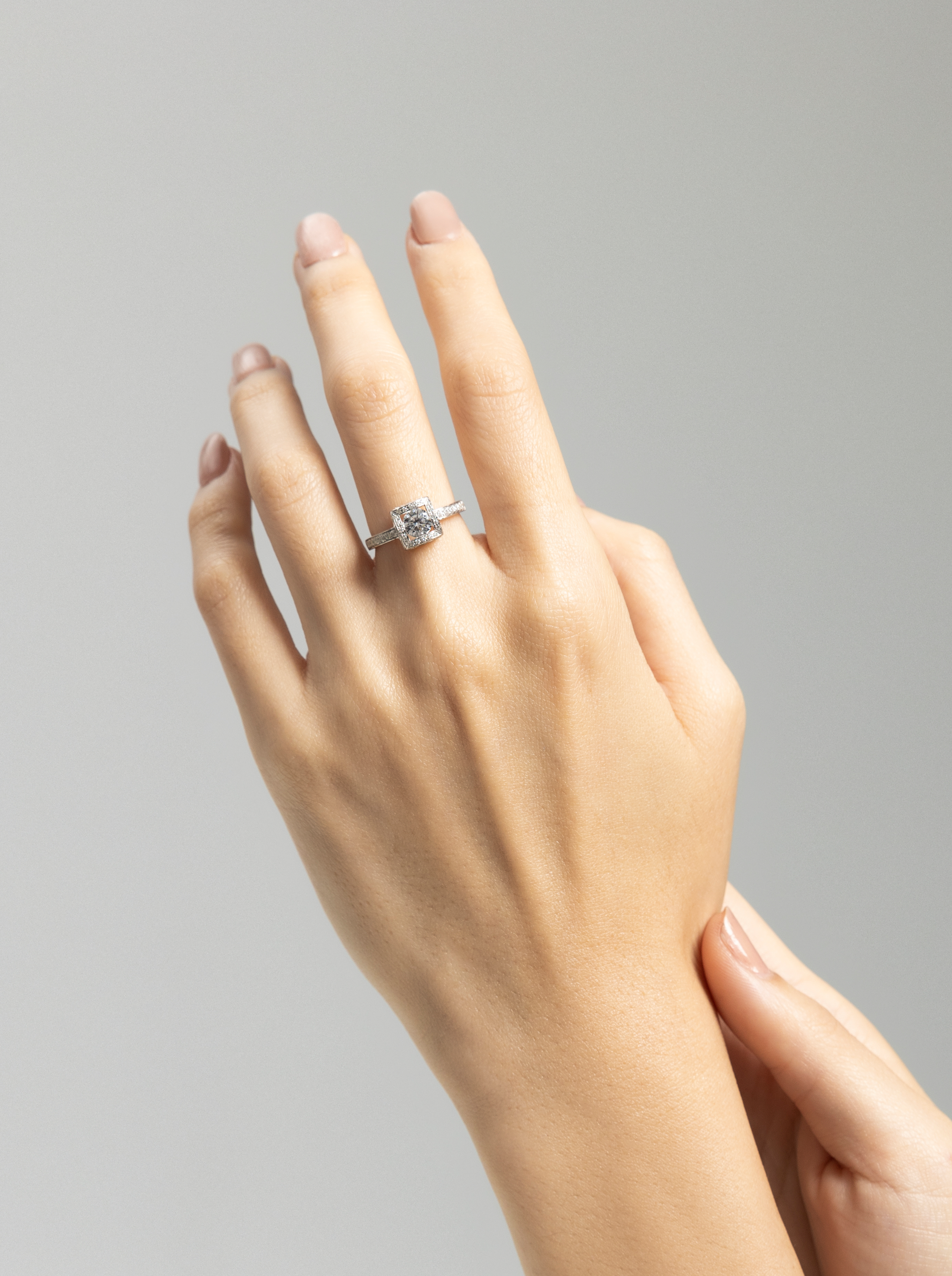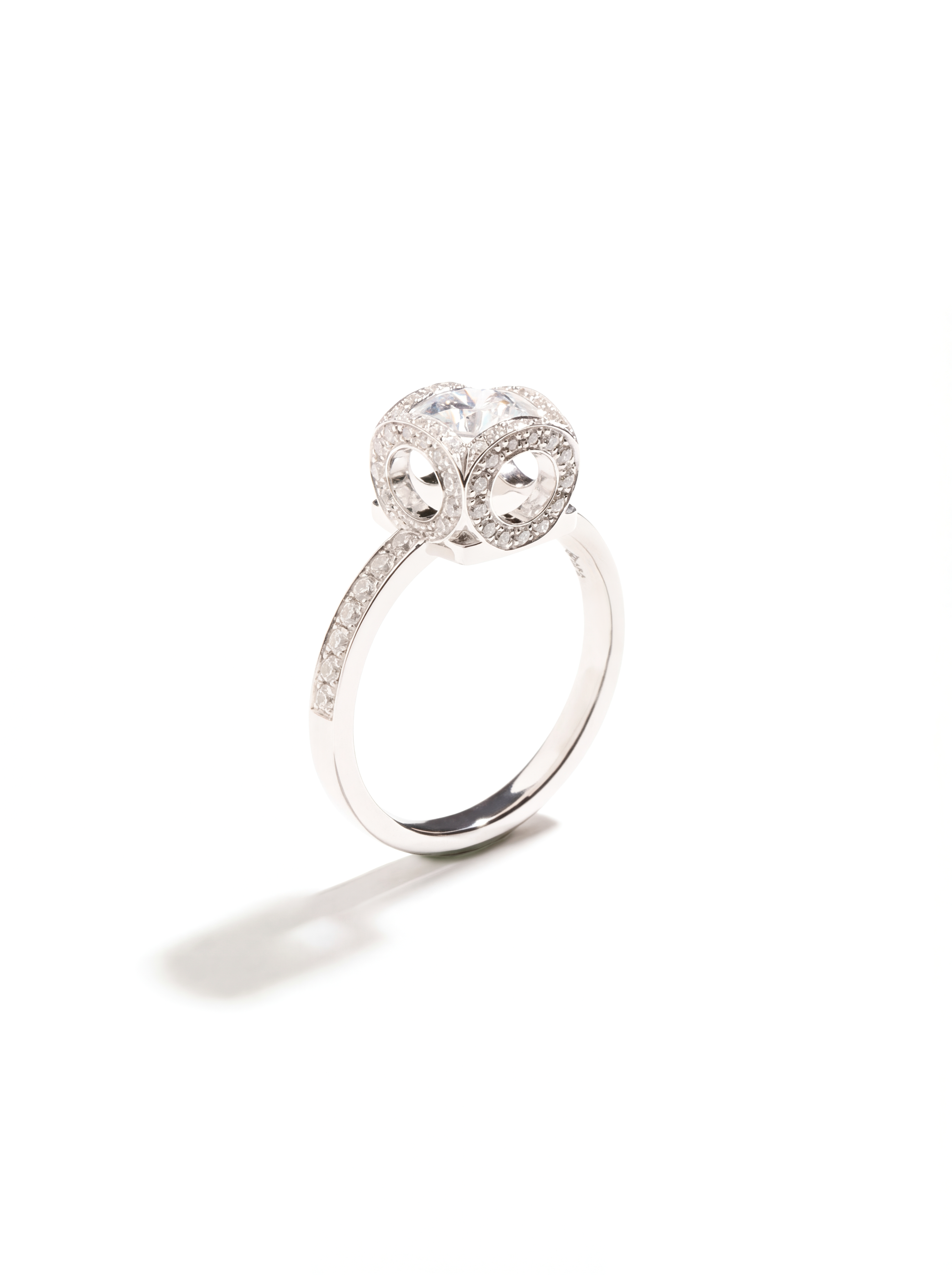 以 ARA Fine Jewellery 標誌為靈感的經典設計,將4個鏤空的小「a」化為方正的鑽石托座,彷彿象徵圓滿的窗花,讓配戴透過不同角度欣賞鑽石的火光與刻面,凝視鑽石中乘載的美好時光與回憶。