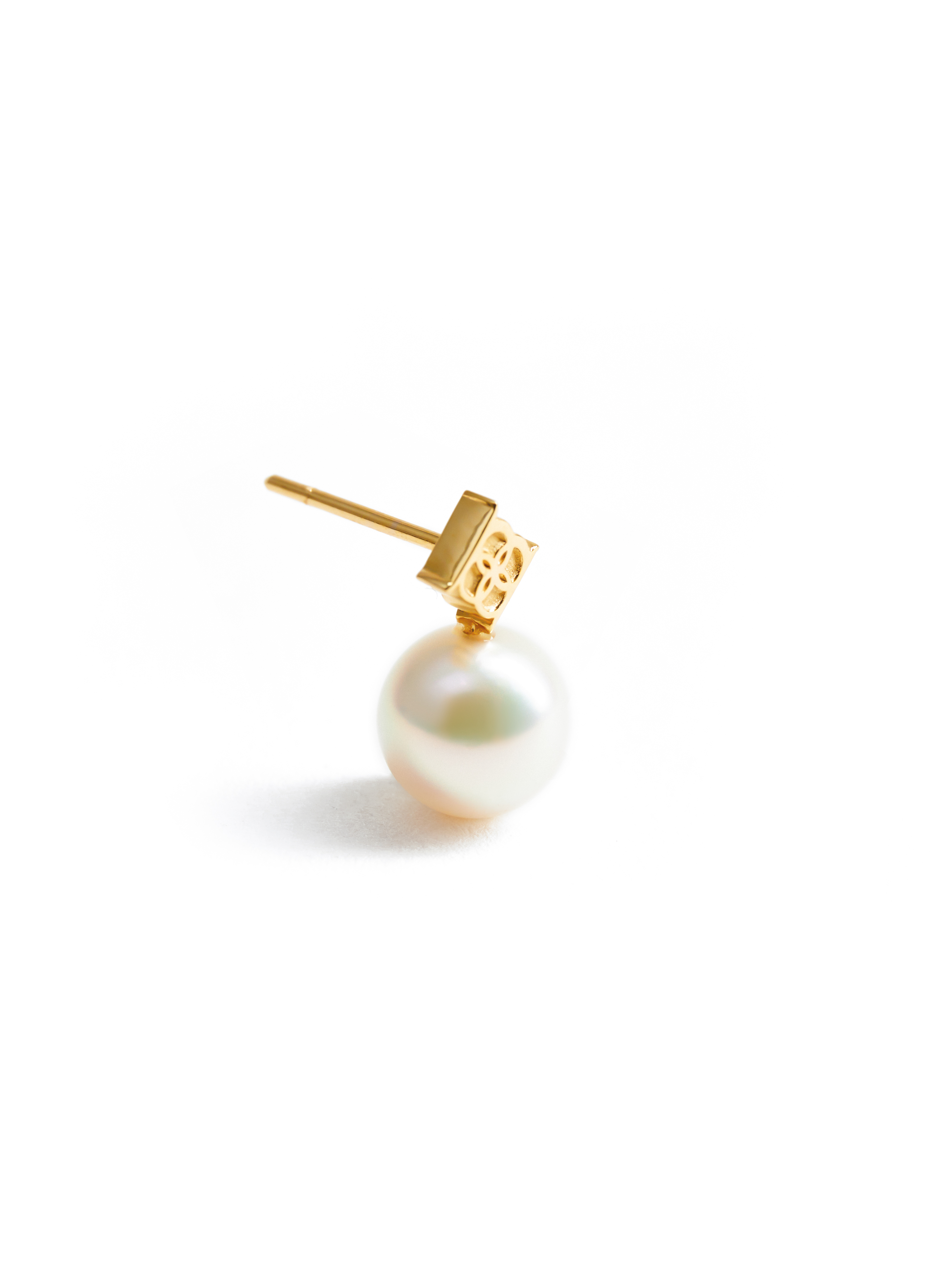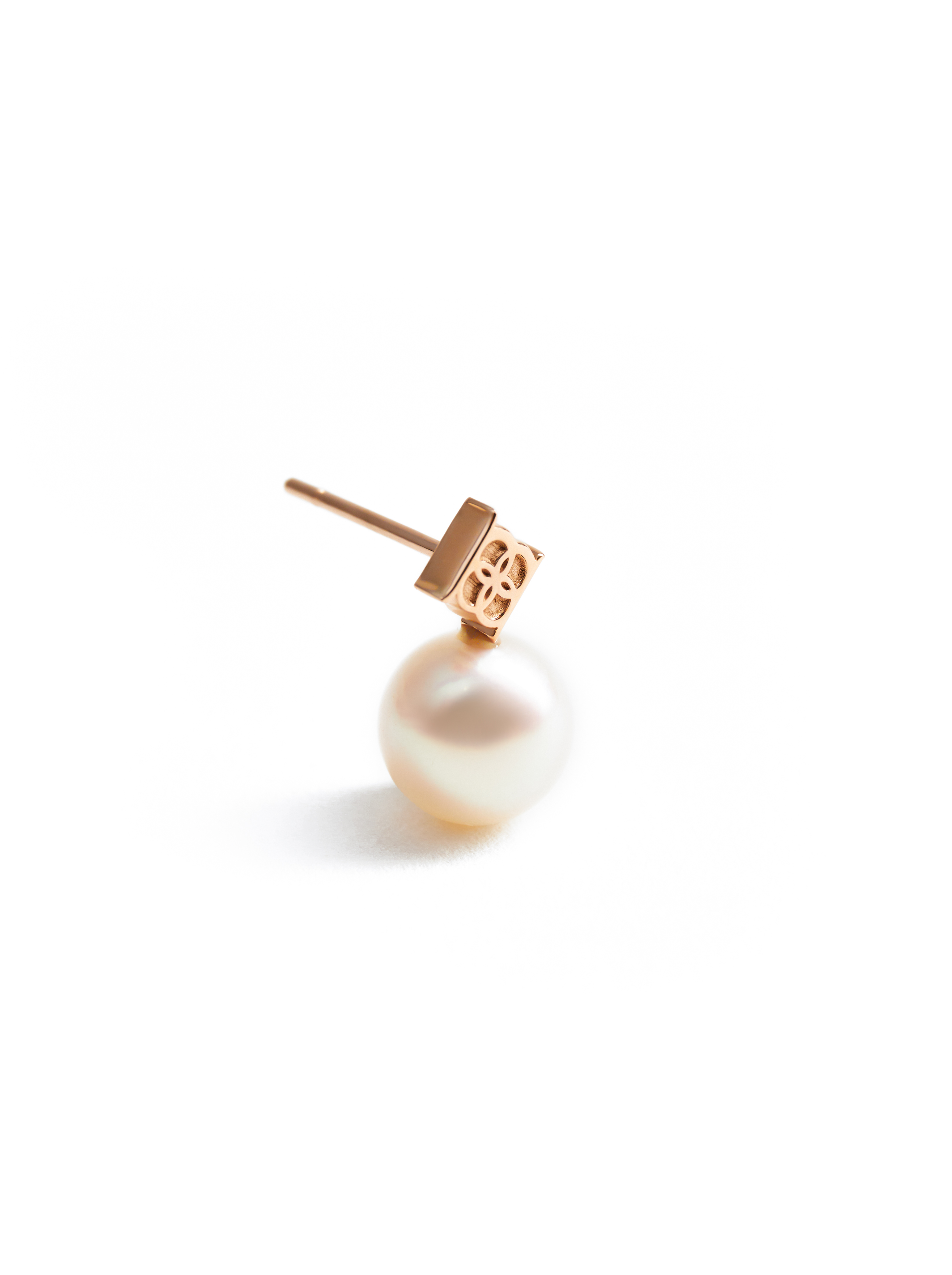 頂級 AKOYA 珍珠帶有如燈泡般瑩亮的粉紅皮光,結合 ARA 品牌標誌的設計,為耳際造型畫龍點睛。珍珠大小與等級能依照顧客預算調整,並提供 18K 黃金、 18K 玫瑰金、PT950 鉑金等三種選擇。