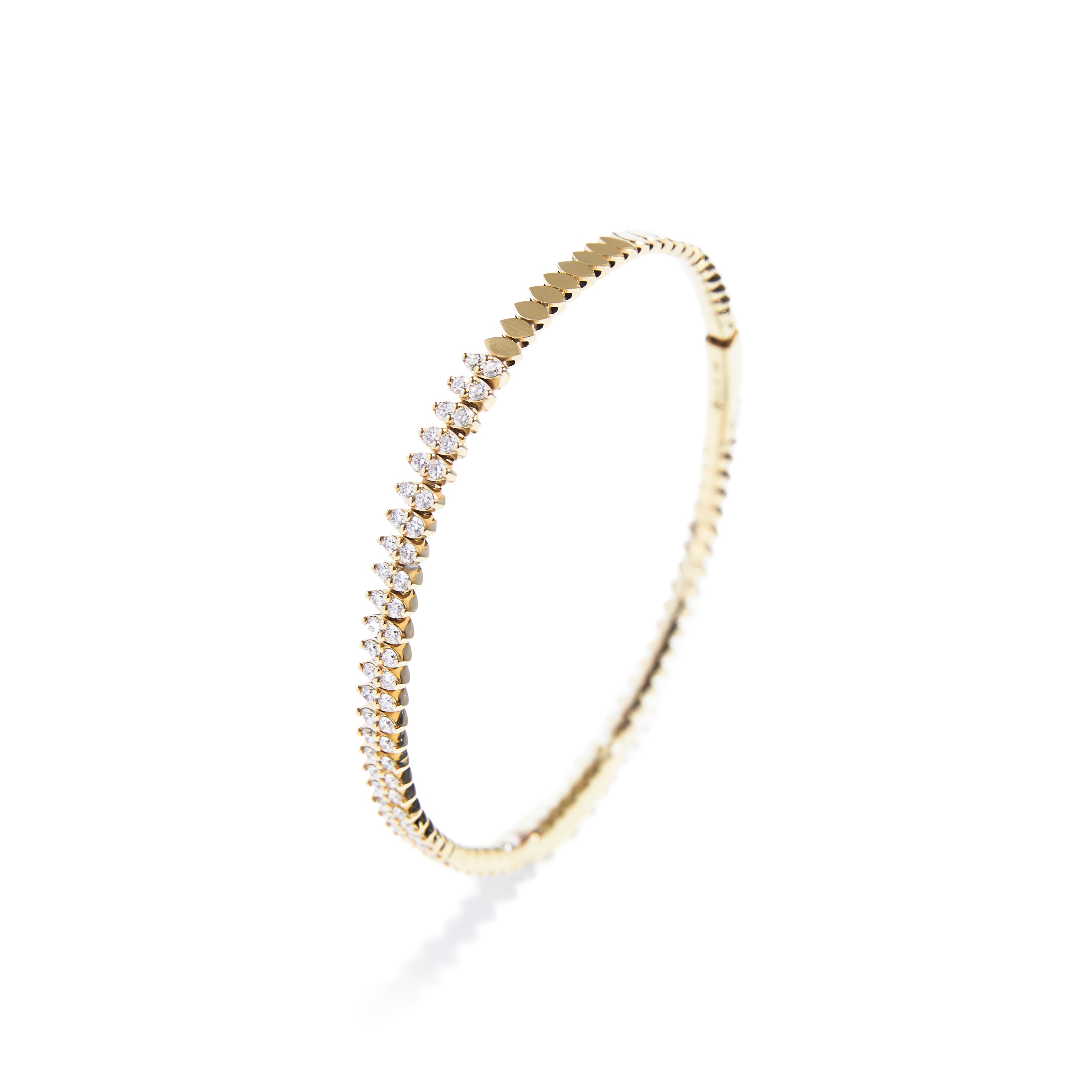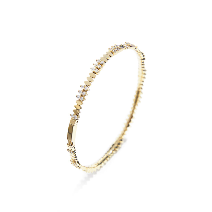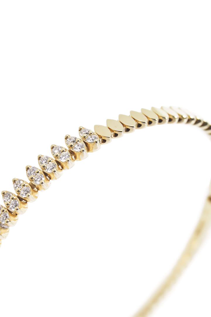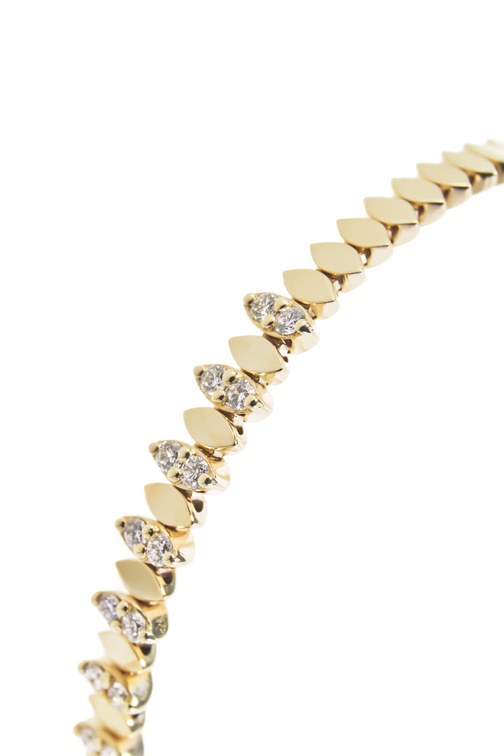 - 靈感取自花瓣曲線,手鐲以雙尖橢圓輪廓構成單元造型,層層排列如花瓣圍繞手腕,融合細緻鑲鑽與18K黃金,散發柔美又奢華的氣質。