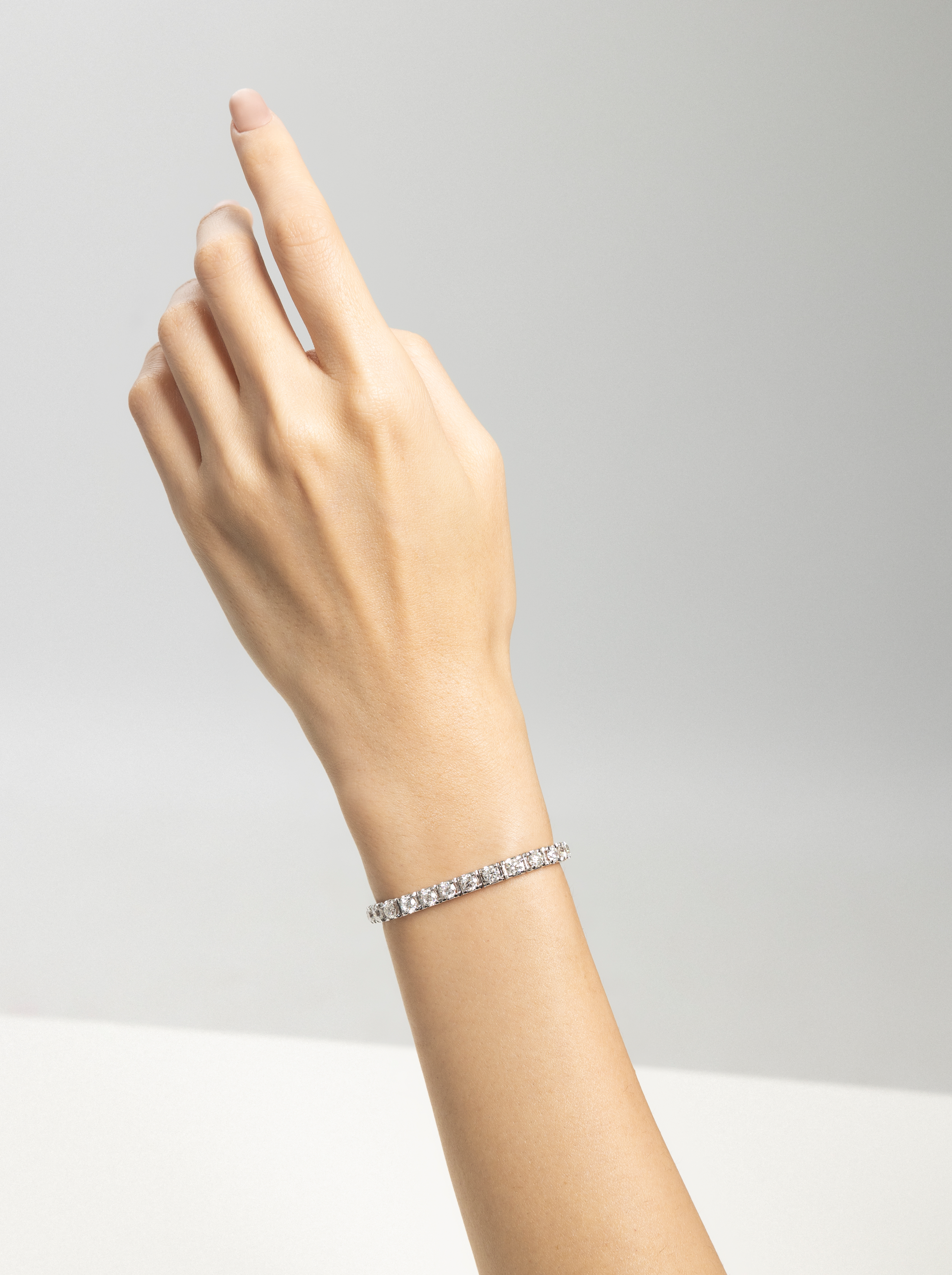 本款手鏈提供 18K 黃金、18K 玫瑰金與 PT950 鉑金 三種材質選擇,可依個人風格與佩戴習慣進行搭配。鑽石部分亦可依照個人預算彈性調整 鑽石大小、等級與鑲嵌數量,在既定結構下微調比例,打造最符合需求的專屬配置。