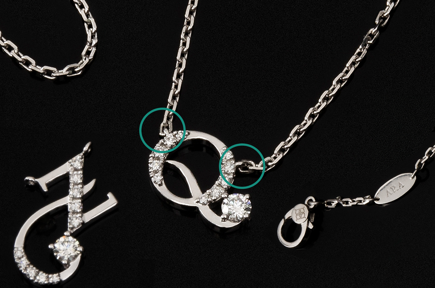 ARA Fine Jewellery 將鏈條與墜飾的接合處落差做到最小,不僅視覺上更俐落,也能防拉扯斷裂。