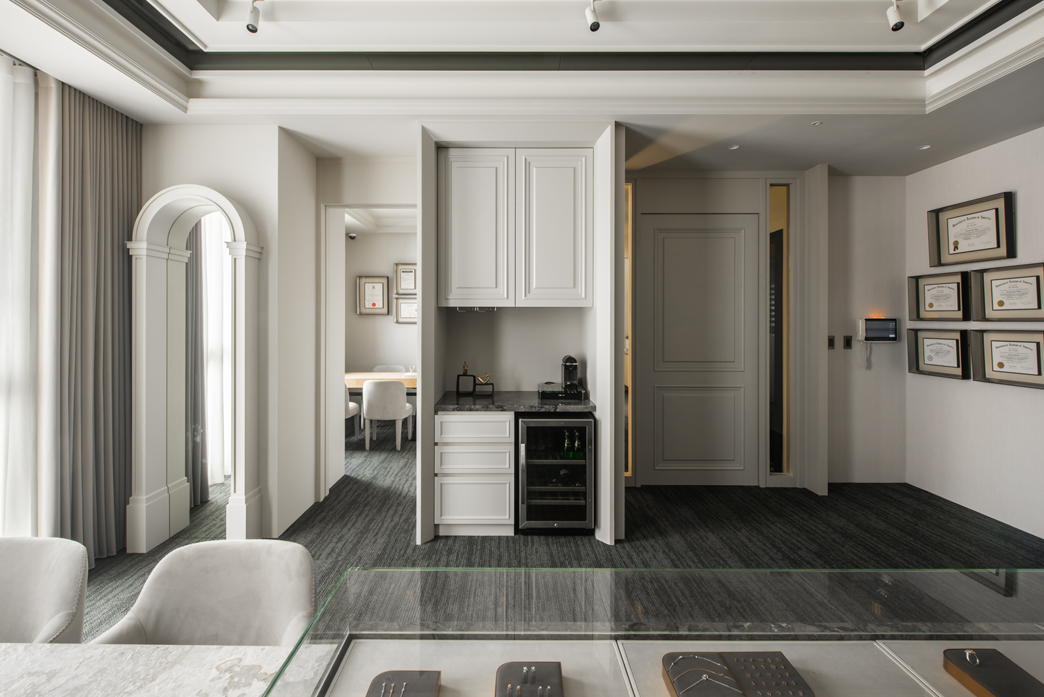 在溫潤光線的映照下,珠寶的光芒與空間氛圍彼此呼應,顧客可於此自在地鑑賞、試戴,並與設計師一對一交流訂製細節。為確保服務品質與隱私,展示空間採預約制,每個時段僅接待一組貴賓,讓到訪者能於靜謐氛圍中,感受被悉心對待的尊榮體驗。