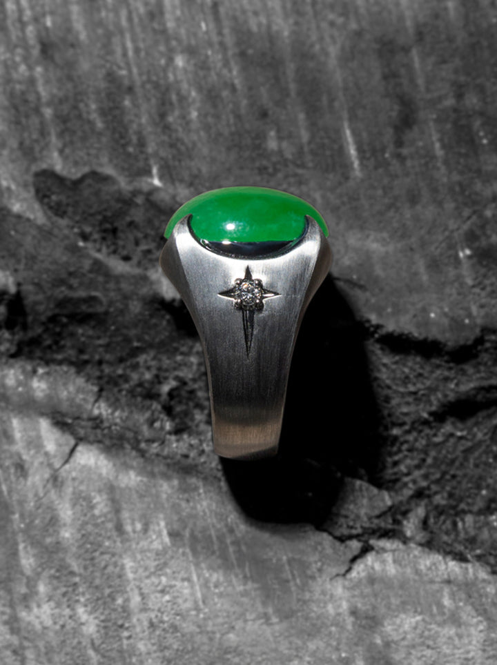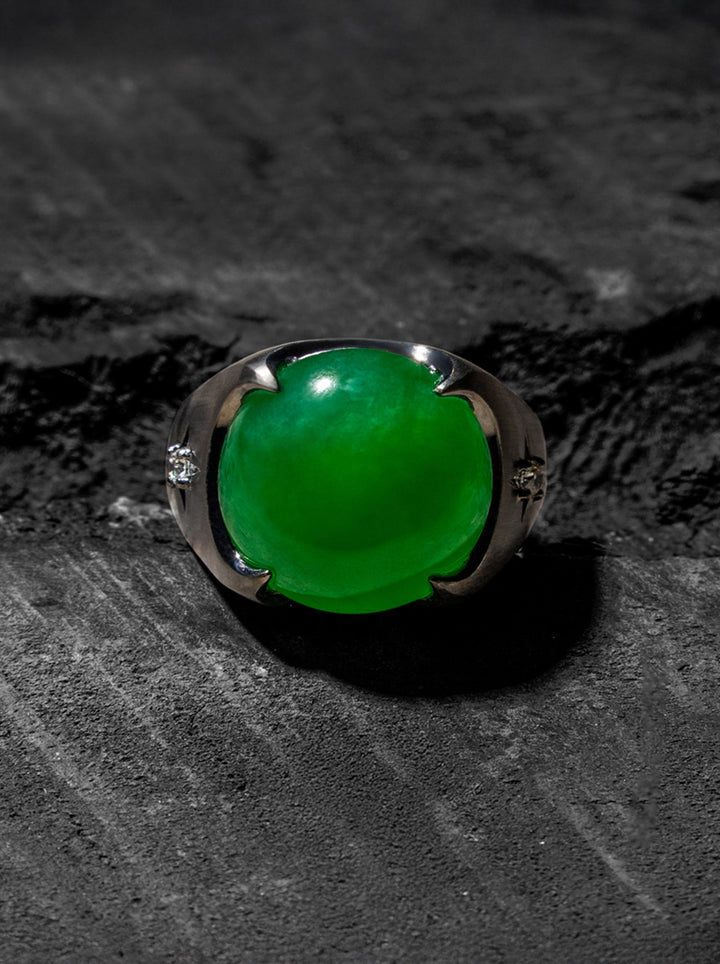 守護|翡翠鉑金鑲鑽戒指