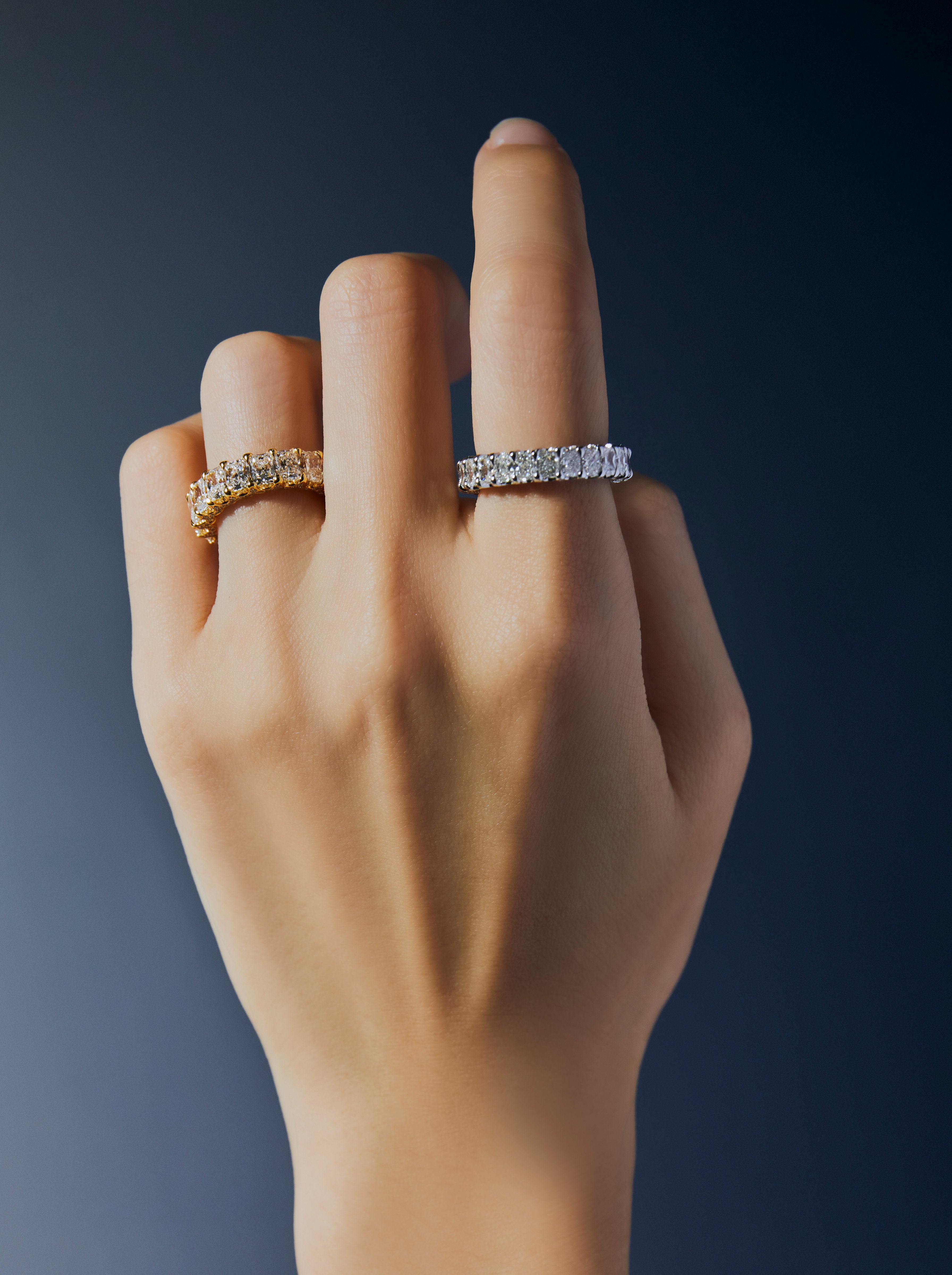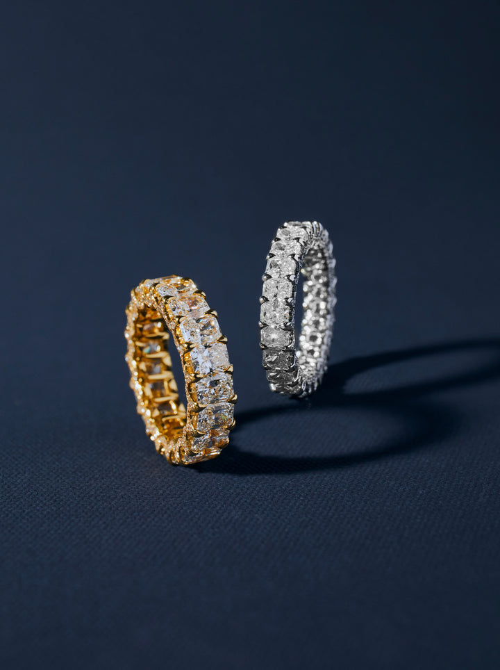 ARA 嚴選雷蒂恩切割(Radiant Cut)鑽石,結合長方形輪廓與明亮式切工的特點,能在方正的線條中綻放細膩又強烈的火光。