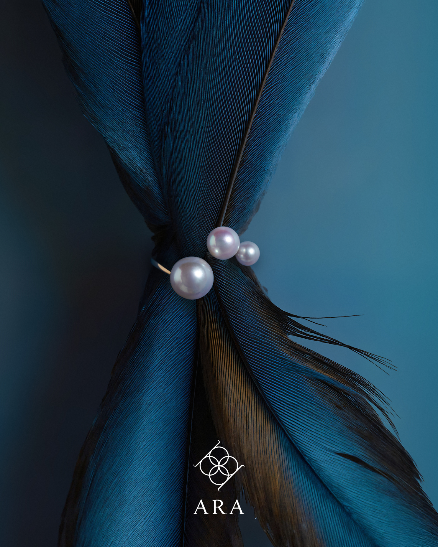 以三種不同尺寸組合的 AKOYA 珍珠在指間排出一個優雅弧度,大小錯落卻彼此呼應,像把光點收成一條細緻的軌跡。圓潤珠面貼著金色戒環,一轉動手指,視線便自然停在戒指上,存在感溫柔卻清楚。