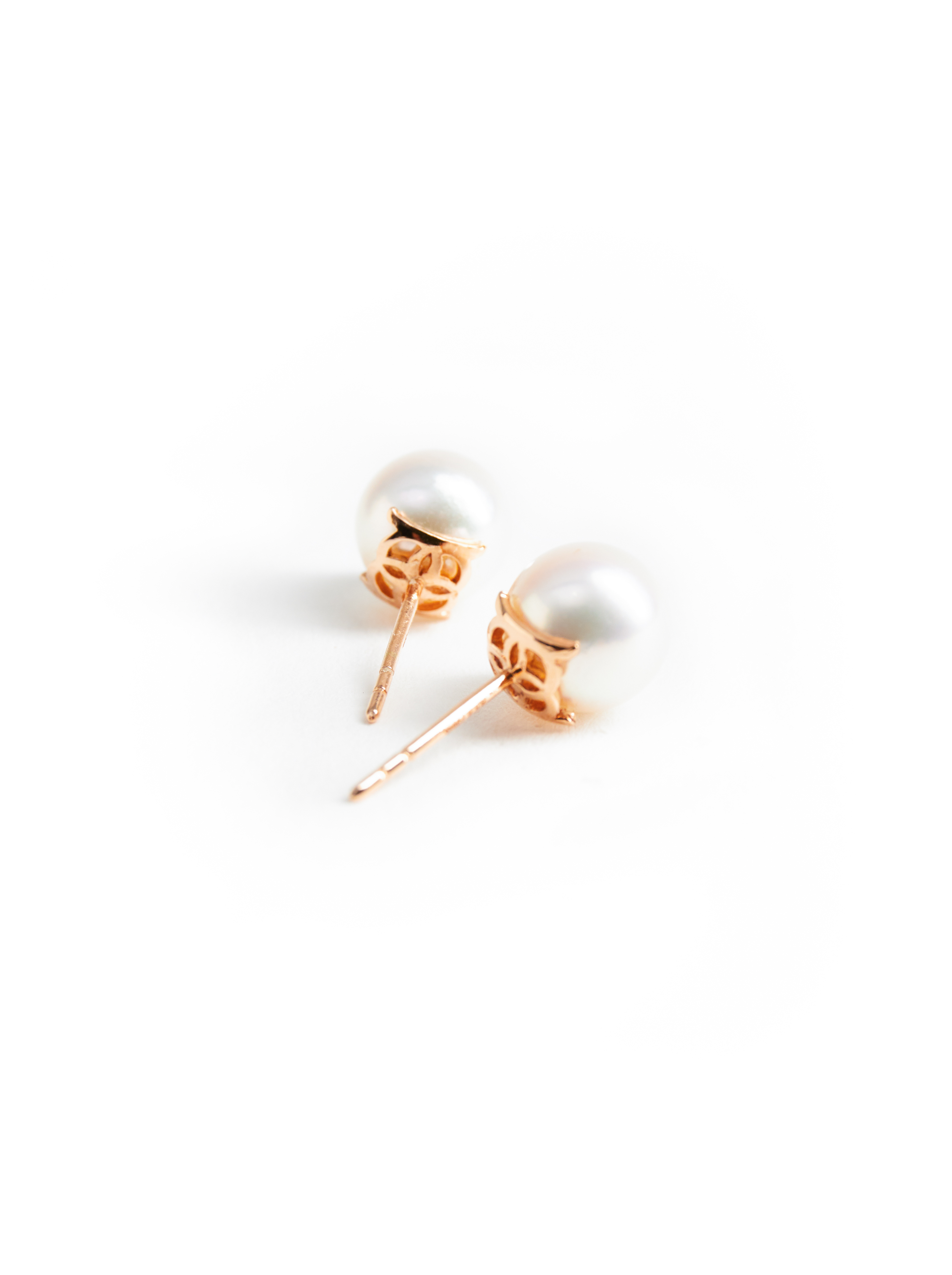 頂級 AKOYA 珍珠帶有如燈泡般瑩亮的粉紅皮光,為耳際造型畫龍點睛。珍珠大小與等級能依照顧客預算調整,並提供 18K 黃金、 18K 玫瑰金、PT950 鉑金等三種選擇。