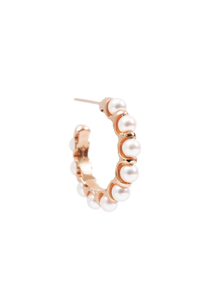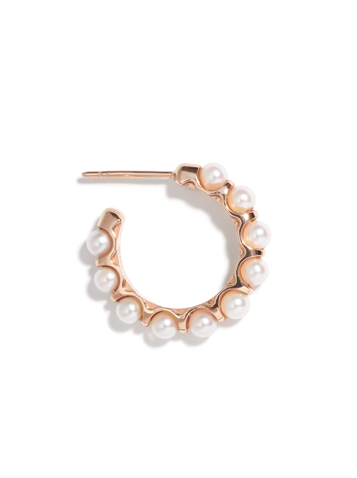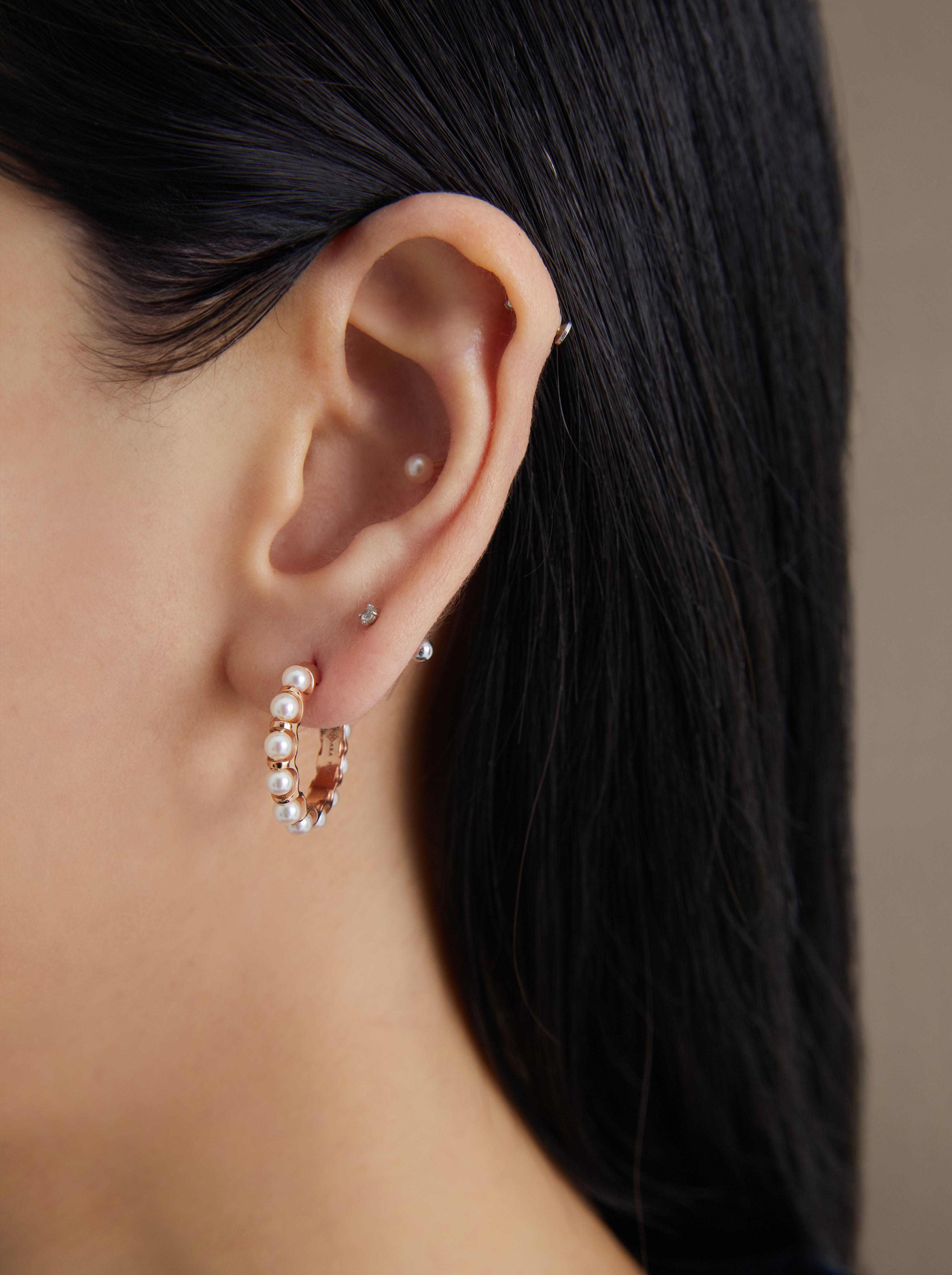 頂級 AKOYA 珍珠帶有如燈泡般瑩亮的粉紅皮光,作為項鍊、耳環配戴,結合適合亞洲人暖調膚色的18K黃金、玫瑰金,還能為臉部的妝容增添好氣色。